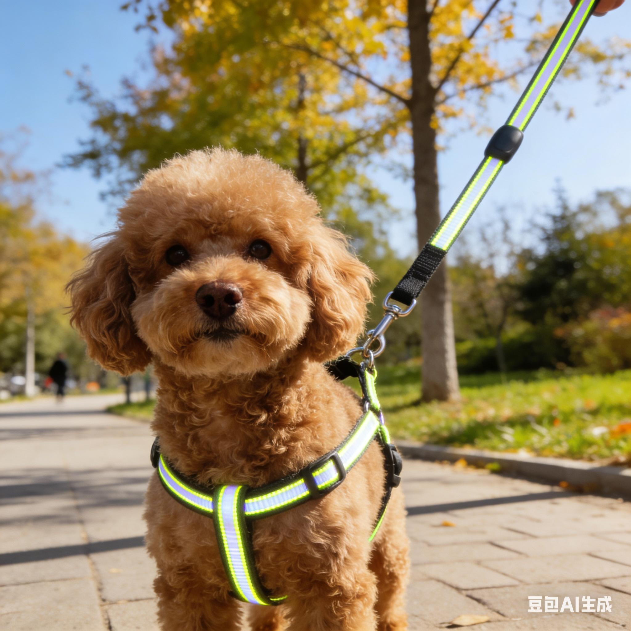 狗狗牵引绳防爆冲反光、中大型犬耐磨遛狗绳、小型犬可爱印花牵引带、胸背牵引绳套装
