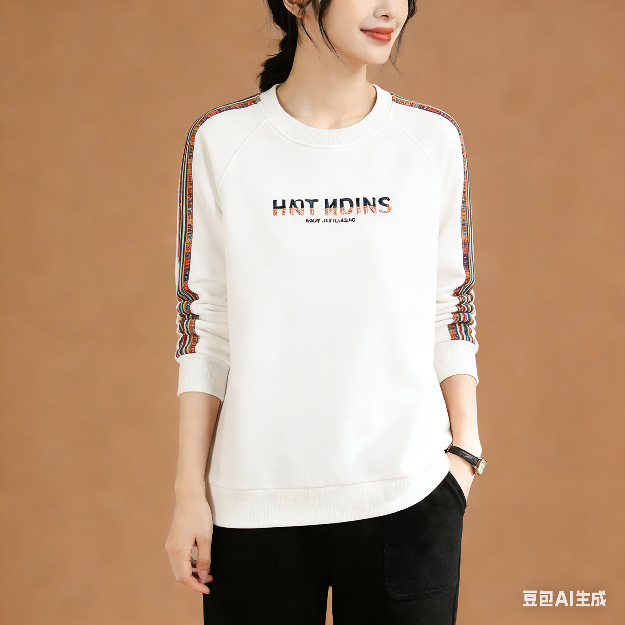 5. 国潮印花元素,罗纹领口稳固,舒适无束缚,春秋冬三季适配