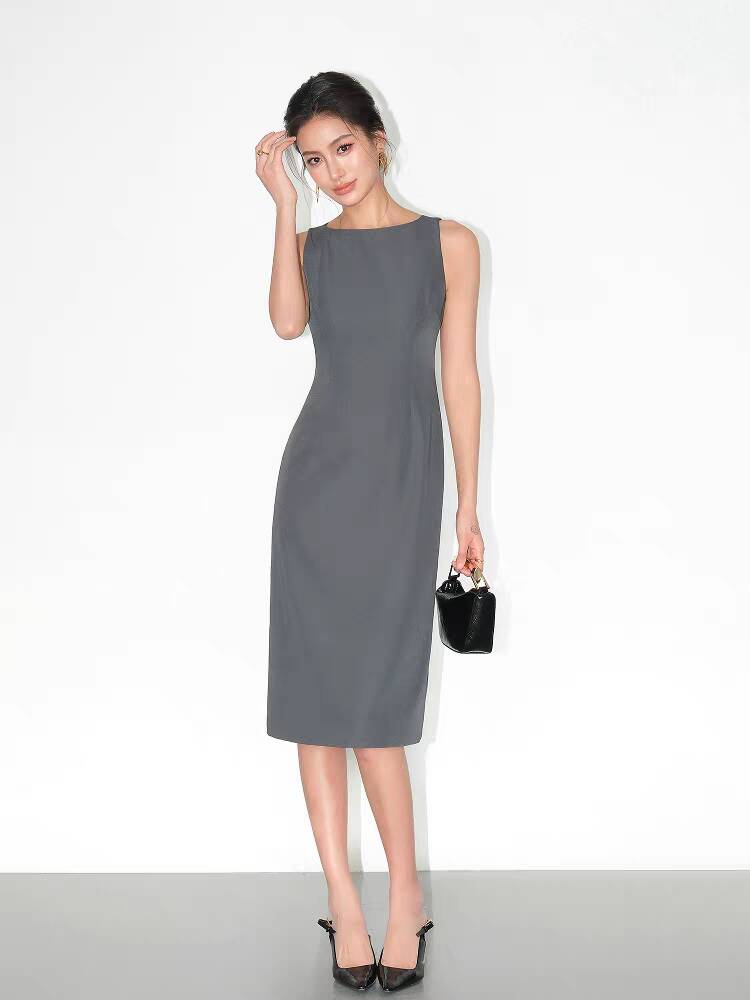 Whisper Silk Rachel Dress: Sleeveless Boat Neck Mulberry Silk Commuter Dress
