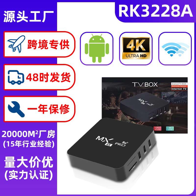 电视盒子MX4K高清机顶盒双频wifi5G网络安卓播放器TV BOX外贸