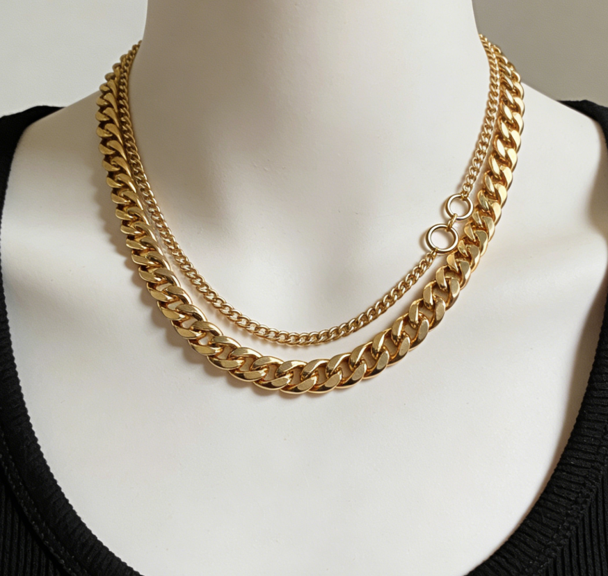 Adjustable Cuban Link Choker Necklace Dual Layer Chain Unisex Gender-Neutral